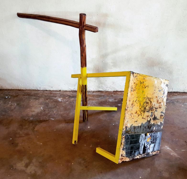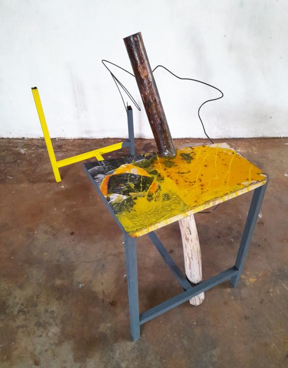 série de 10 pièces - acier, bois, résine,pigment, photographies - h70 à 130 cm